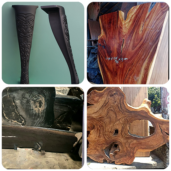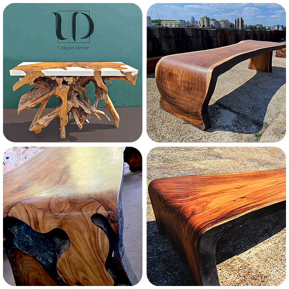 Our collection features stunning slabs of tropical hardwoods, expertly crafted into bespoke tables, chairs, and benches, alongside breathtaking petrified wood creations. We also showcase beautifully designed pottery, elegant vases, and unique decor items that blend traditional craftsmanship with contemporary aesthetics.