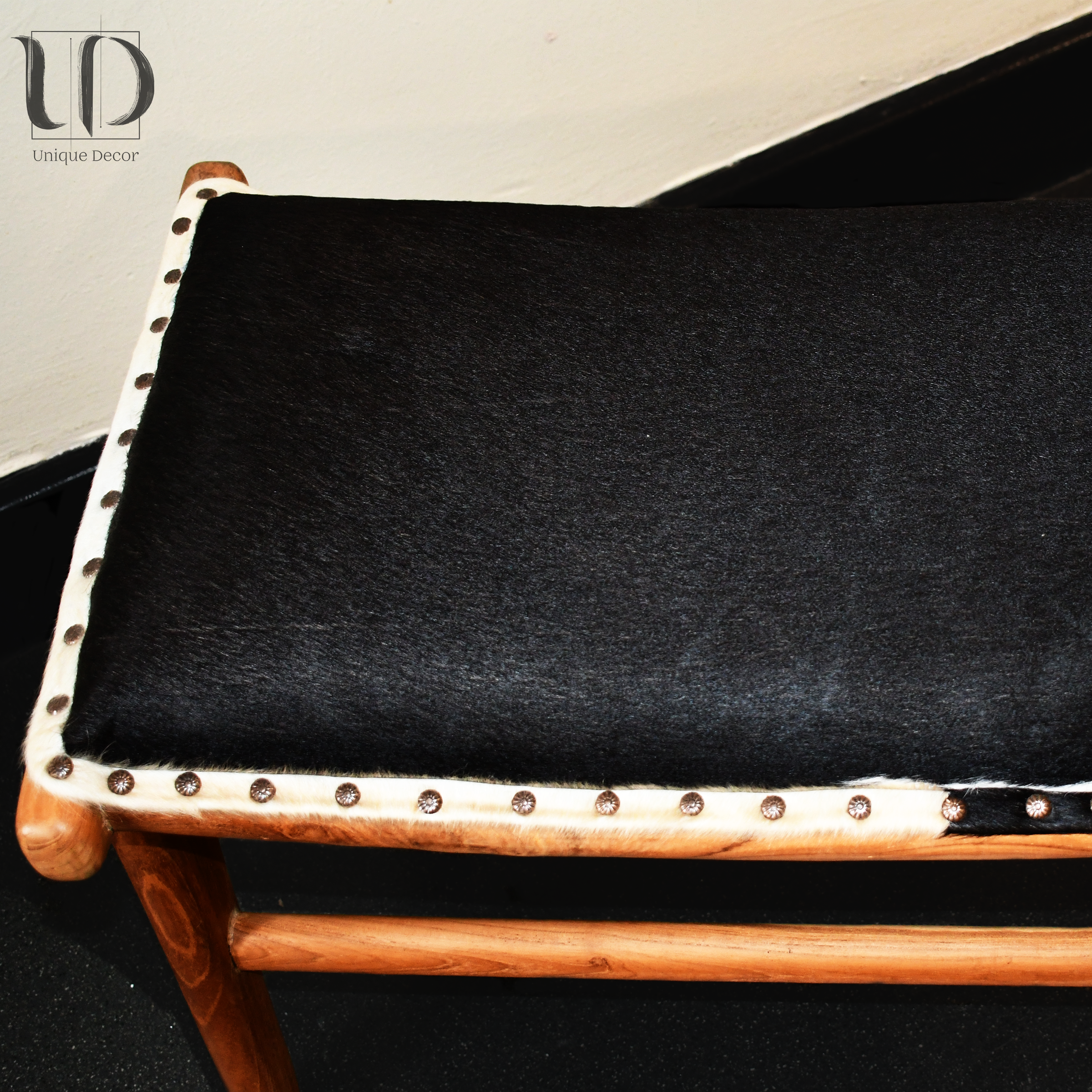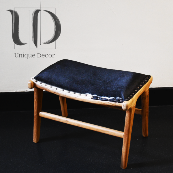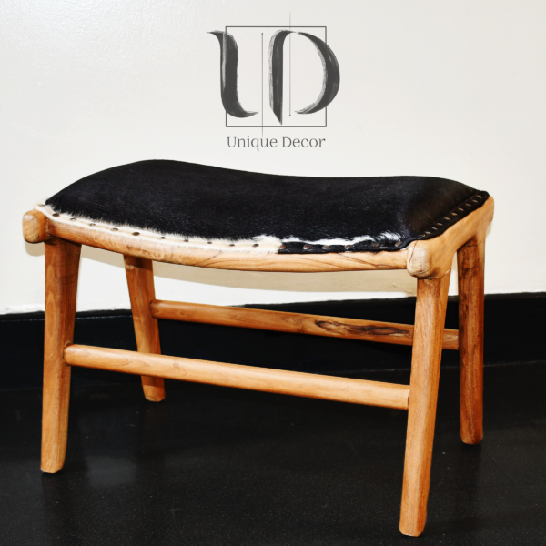 Introducing the Teak Stool, a perfect blend of natural beauty and contemporary style. This exquisite stool is meticulously handcrafted from premium teak wood, renowned for its exceptional durability and rich grain patterns. The stool features a luxurious cowhide seat, offering a unique combination of rustic charm and modern elegance. Each piece is distinct, showcasing the natural variations in the cowhide and the intricate craftsmanship of the teak frame.