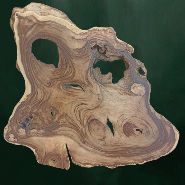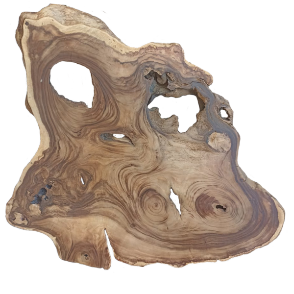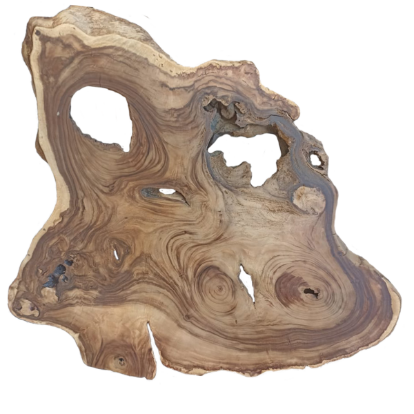 Introducing the Mystic Wave – Suar Wood Slab, an extraordinary piece of nature’s artistry, perfect for creating bespoke furniture that exudes both elegance and organic beauty. Sourced from the heart of Southeast Asia, Suar wood is celebrated for its captivating grain patterns, rich in texture and contrast. This particular slab boasts a unique, wave-like formation with natural voids and undulations, giving it a sculptural quality that is both dramatic and inviting. The natural curves and stunning grain make it a standout choice for those looking to add a touch of nature’s magnificence to their interiors.